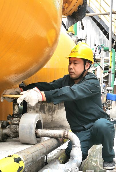 在此期間,梅德政遇到過很多挑戰(zhàn)與難題,2018年,復(fù)合肥廠涼水塔失火,火情在大家的共同努力下很快得到控制,但火災(zāi)過后的清淤工作成了更棘手的事。已燃燒和未燃盡的塑料掉入池中,沒有趁手的工具能做到完全清理,必須人工打撈??墒浅厣畋诨?,下面的燃燒廢料和其他材料混雜在一起,作業(yè)環(huán)境有很多未知風(fēng)險(xiǎn)。梅德政二話不說,率先穿好雨衣拿著一只袋子就下去了。高溫環(huán)境、廢棄材料燃燒過的刺鼻氣味,再加上雨衣的行動(dòng)不便,看似簡單的動(dòng)作變得特別吃力。其它同事見班長帶頭下去,也一個(gè)個(gè)跟著下去……