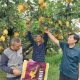 示范園里,棵棵桃樹郁郁蔥蔥,掛滿了色澤鮮艷、果形美觀的水蜜桃。這些水蜜桃表皮光滑細(xì)膩,肉質(zhì)鮮嫩多汁,香甜可口,令人垂涎欲滴?!皞€(gè)大,色好”“平均都在半斤以上,沒有小個(gè)”?,F(xiàn)場(chǎng),種植戶寇駿哲分別從桃的糖度、果個(gè)、重量、口感等多方面,為大家展示了他家的中桃14和黃金蜜桃,在沖施了鄂中仟金方肥料后的出眾表現(xiàn),收獲了極大好評(píng)。