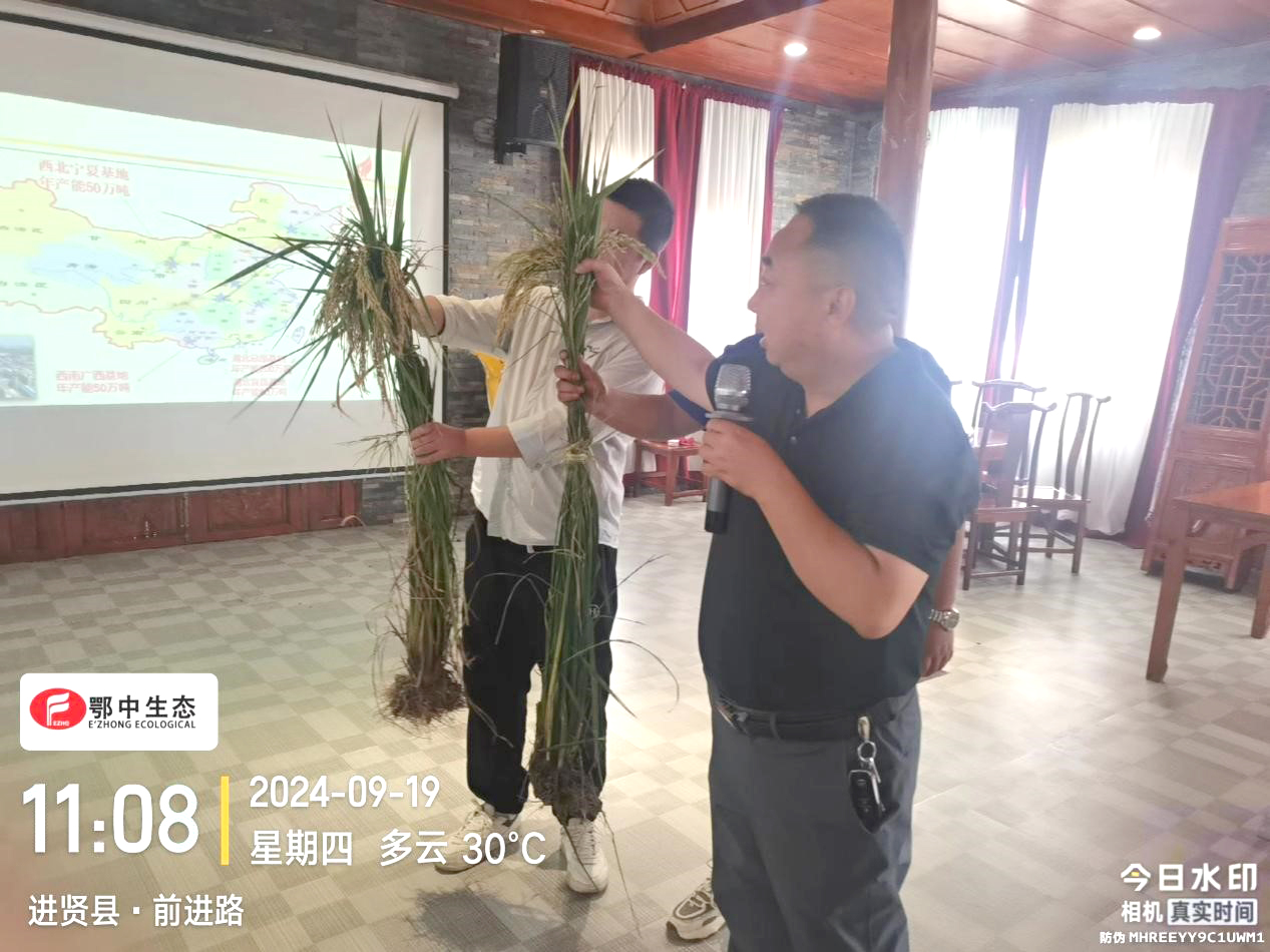 種植戶俞有才激動(dòng)地分享著自己的“第一次”嘗試——今年,他首次使用了2噸鄂中仟金方42%(22-8-12)微生物生態(tài)復(fù)合肥,這一決定源自別人的“說者無心”,他的“聽者有意”。俞有才巧妙地設(shè)置了“田間實(shí)驗(yàn)室”,在道路兩側(cè)的水稻田里,一邊施用鄂中仟金方,另一邊則是傳統(tǒng)肥料。現(xiàn)場(chǎng),兩株水稻的直觀對(duì)比,是最直接的證言:鄂中仟金方孕育出來的水稻,葉片如扇,翠綠欲滴,分蘗茂盛,幾乎是對(duì)照田的兩倍;抽穗飽滿,數(shù)量更是多出1/3,在場(chǎng)的農(nóng)戶紛紛贊嘆不已。