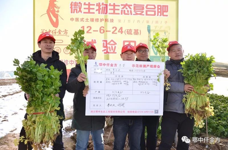通過(guò)測(cè)產(chǎn)組、中醫(yī)養(yǎng)護(hù)隊(duì)員、新型職業(yè)種植大戶(hù)共同測(cè)產(chǎn)見(jiàn)證:示范田西芹單株株高平均比對(duì)照田高5公分;長(zhǎng)勢(shì)均勻,成品率更高,葉莖更濃綠,葉柄寬厚,莖干粗壯,抽生花莖多,植株生長(zhǎng)旺盛,大而濃密,葉柄未出現(xiàn)破裂;而對(duì)照區(qū)長(zhǎng)勢(shì)強(qiáng)弱差別大,很多小株,葉柄破裂的多,根本沒(méi)法賣(mài)。折斷看橫切面,示范田西芹粗纖維少,細(xì)纖維多更豐富,質(zhì)地更脆嫩,現(xiàn)場(chǎng)咀嚼芳香味濃,口感清脆,芹菜能當(dāng)水果吃;現(xiàn)場(chǎng)檢測(cè)示范田西芹莖葉中所含的胡蘿卜素和維生素C比對(duì)照田西芹平均含量高0.4-1.2mg,品質(zhì)更優(yōu)良,增加了西芹的營(yíng)養(yǎng)和食療價(jià)值,能賣(mài)高價(jià)錢(qián),現(xiàn)場(chǎng)樂(lè)壞了示范戶(hù)梁東獻(xiàn),在場(chǎng)觀(guān)摩的其他種植大戶(hù)也紛紛表示一定得試試鄂中仟金方!