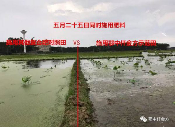 四是防病抗?。菏痉短锱赃叺膶φ仗?,因為有藥害,施用其他復合肥因為農藥殘留沒有分解始終長不起來,藕農已不報什么希望,施用仟金方的示范田,解除了前茬作物殘留和根系分泌物分解生產的有毒物質及有害物質。