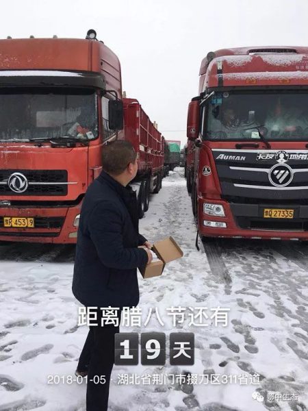 ??? ?寒潮來襲,引起大量車輛滯留,他們?yōu)榭蛻羲蜕吓臒岵?,升起暖暖的爐火,為客戶問寒問暖,第一時間在寒冷的天氣里為客戶送來有溫度的物流體驗!