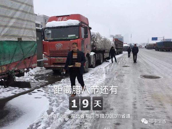 1月5日,鄂中生態(tài)副總經(jīng)理朱玉軍率荊門物流生產(chǎn)基地經(jīng)理陳云等物運人員冒著凌冽的大雪,不畏風雪嚴寒,一早來到公司就開始工作了。為保障物流體系不受影響,副總經(jīng)理朱玉軍及時協(xié)調(diào)裝卸、倉儲、運輸、分撥、報驗等一體化服務。