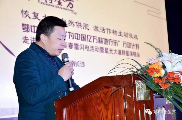 鄂中生態(tài)總經(jīng)理助理蔡建新在致辭中表示:鄂中仟金方微生物生態(tài)復(fù)合肥向我們證明:一是符合國家的產(chǎn)業(yè)政策,符合供給側(cè)結(jié)構(gòu)性改革,符合消費者需求的變化,向綠色生態(tài)肥料轉(zhuǎn)型,把土地調(diào)好,把作物品質(zhì)提高,關(guān)注健康。二是解決了土壤和作物的困境。鄂中仟金方能減少了化肥用量,提高化肥利用率,重構(gòu)健康的土壤,提高了作物抵抗病蟲害的能力,達(dá)到生物預(yù)防病害的效果,為土壤修復(fù)、減肥增效、農(nóng)產(chǎn)品提質(zhì)的國家戰(zhàn)略提供了強(qiáng)有力的保障。三是規(guī)避了產(chǎn)能過剩,產(chǎn)品同質(zhì)化嚴(yán)重,市場競爭日趨激烈這一現(xiàn)狀。四是給我們帶來了廣闊的市場機(jī)遇。