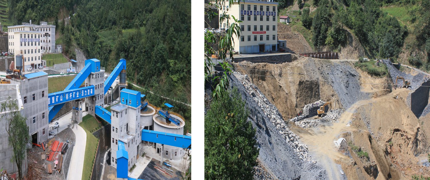 同一角度選礦廠建成前后對比照,左圖為2018年9月23日,選礦廠正進行基礎(chǔ)施工;右圖拍攝于2019年8月1日,試生產(chǎn)中的選礦一角。